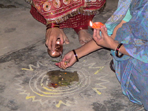 The women will sing together and recite several interesting stories related to this fast. In one of the stories, Savitri, the legendary fasting woman, confronts the Lord of Death, Yama, and due to the power of her honest and devoted fast she gained back her husbands life and much more.