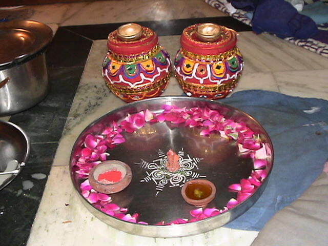 On this day married women decorate their hands and feet with beautiful henna patterns and take a vow (sankalp) or decision to remain without food, without water, and without sleep from the time of sunrise till the moon is rising, for their happy and prosperous married life and for the wellbeing of their husband.