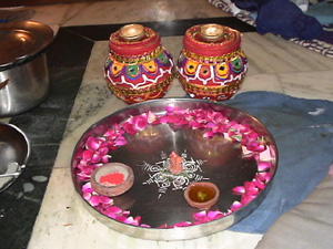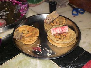 Offerings of eight puris and eleven Rupees are made to the Chauth Maata in front of the shrine.