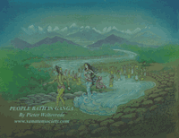 penances to please Shiva. When Ganga descended from the heavens, Shiva covered the sky with